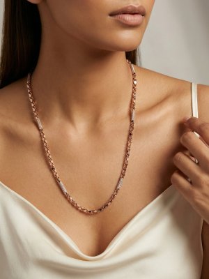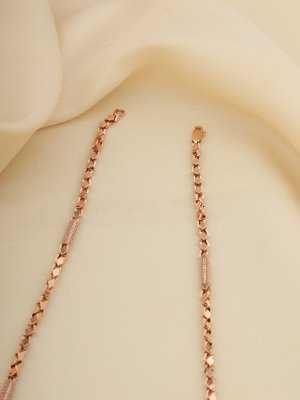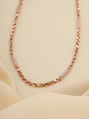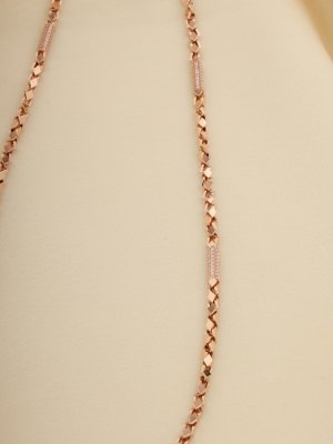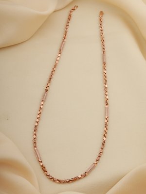 Define your signature style with the Prism Station Chain, a masterpiece of geometric balance designed for all genders. This sleek unisex necklace features high-polish, diamond-faceted rose gold links that create a unique, light-catching texture. Strategically placed rectangular stations, meticulously hand-set with brilliant-cut pavé stones, offer a sophisticated contrast to the sharp lines of the chain. Its slender profile makes it exceptionally versatile—wear it as a solo statement of modern minimalism or layer it for a high-fashion, textured look. Crafted for those who appreciate refined details and contemporary luxury.