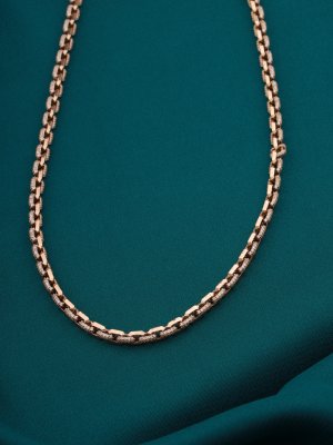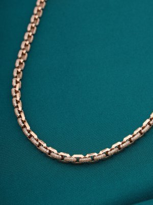 Engineered for the man of substance, the Titan Rail Box Chain redefined the classic box link with architectural precision. This men's 18K rose gold necklace features a series of robust, interlocking rectangular links, creating a solid and masculine silhouette. The top surface of each link is densely hand-set with brilliant-cut micro-pavé stones, forming a continuous, linear stream of radiance. Its heavy weight and sharp, clean lines provide a sophisticated presence that balances industrial strength with high-end luxury. Whether worn as a powerful solo statement or a foundation for a premium pendant, the Titan Rail is a signature of modern prestige.