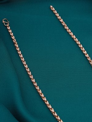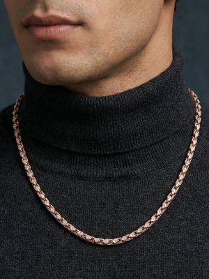 Sharpen your style with the Apex Chevron Chain, a masterpiece of modern geometric design. Crafted in premium rose gold, this men's necklace features a continuous series of interlocking, sharp-angled chevron links. The three-dimensional, jagged structure creates a bold, architectural texture that catches the light from every direction. Each link is meticulously hand-set with brilliant-cut stones, adding a high-contrast shimmer to the sharp metalwork. Designed for the man who wants a signature piece that breaks away from the ordinary, the Apex offers a sleek, industrial presence that defines 21st-century luxury.