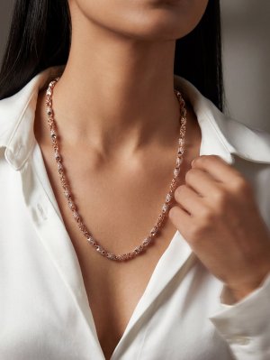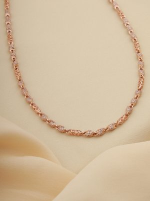 Experience the perfect harmony of openwork artistry and brilliant light with the Lattice Aura Chain. This unisex masterpiece is crafted in 18K rose gold, featuring a unique alternating link design. Intricate lattice-cut cylindrical links provide a modern, airy texture, while their counterparts are densely hand-set with brilliant-cut pavé stones for a high-impact shimmer. The three-dimensional, tubular structure of the links ensures the chain catches the light from every direction, offering a sophisticated and contemporary silhouette. Designed to be a versatile staple, it serves as a bold solo piece or a luxury foundation for a layered look.