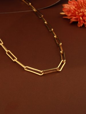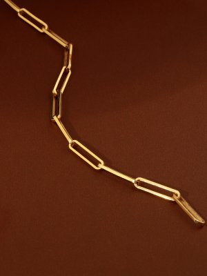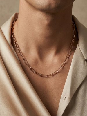 Simplicity meets substantial luxury in the Linear Titan Link. This contemporary men's necklace is crafted from elongated, high-gauge rectangular links, creating a clean and architectural silhouette. Unlike standard chains, the oversized "paperclip" geometry offers an airy yet bold aesthetic that rests comfortably against the skin. Each link is finished with a mirror-like high polish in 18K yellow gold, designed to catch the light with a sharp, liquid brilliance. Whether worn as a sleek solo statement or layered with a heavy pendant, the Linear Titan is a signature of refined modern masculinity and effortless style.