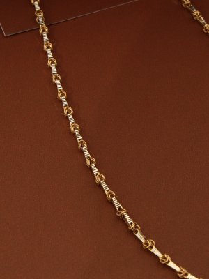 Celebrate the intersection of strength and artistry with the Meridian Knot Chain. This unisex 18K gold necklace is designed for those who appreciate the complexity of fine jewelry. It features a rhythmic, alternating sequence: solid rectangular bars with a precision-engraved "ribbed" texture for a modern, industrial feel, interspersed with hand-woven circular knot links that provide a soft, artisanal contrast. The interplay between the sharp, linear bars and the fluid, organic knots creates a high-texture silhouette that catches the light in diverse ways. Light enough for everyday layering yet substantial enough to be worn solo, the Meridian is a sophisticated signature of gender-neutral luxury.