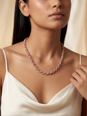 Command respect with the Monarch Iced Rolo Chain, a definitive masterpiece of high-shine luxury. This heavy men's necklace features a continuous series of robust, interlocking circular links a design celebrated for its strength and timeless appeal. Every millimeter of this 18K rose gold piece is meticulously hand-set with a full wrap of brilliant-cut pavé stones. This creates a solid, 360-degree wall of shimmer that captures the light from every direction, even as the chain moves. With its substantial weight and seamless brilliance, the Monarch is designed for the man who demands his signature accessories be both structurally powerful and visually undeniable.