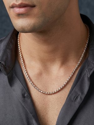 Elevate your daily presence with the Titan Franco Gold Chain, a signature of strength and sophistication. This masterfully crafted men's necklace features a tightly interwoven V link design a hallmark of the classic Franco style creating a robust, four-sided cord that drapes with exceptional fluidness. The surface of each link is precision diamond-faceted, allowing the high-polish 18K yellow gold to catch and reflect light from every angle. Its dense construction provides a substantial weight that feels as premium as it looks. Durable enough for active daily wear yet refined enough for the most formal occasions, the Titan Franco is an essential investment for the modern man’s wardrobe.